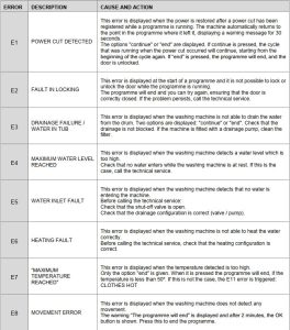 Bảng báo lỗi và cách khắc phục máy giặt Fagor, Domus